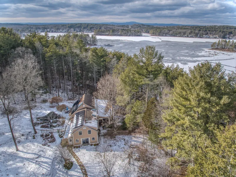 Welcome to waterfront, living. Perched on nearly 10 acres of scenic bluff above Bare Hill Pond, this home perfectly blends modern comfort, rustic charm, extreme privacy, and a bit of Harvard history. A wraparound deck built around dramatic, “erratic” boulders, and a 12x30 screened porch provide breathtaking sunset views over the pond. Featuring passive solar design, exposed beams, and beautiful brickwork, this home is designed for year-round gatherings of family and friends. With a fenced yard and 600’ of pond frontage, enjoy your own dock. A short, wooded, stroll brings you to the town beach. The tranquil setting is complemented by the nearby town center, schools, library, and “the Gen” general store, for convenience and community. If your interests include working the land, take advantage of the 20x40 fenced garden, outbuildings, and your very own maple sugaring shack. Save on electricity by owning 10 KW solar panels and level 2 EV charging stations.Offers considered on rolling basis