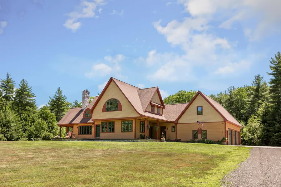 INCLUDES 5.16 Ac Building Lot! Keep for larger lot/future investment or sell today! Priced below appraised value! This expansive unique 4400+ sqft custom built home sits on over 32 private acres perfect for gardening, snowshoeing, cross country skiing, snowsledding, nature walks along Branch Brook. The oversized custom designed kitchen w/Viking stove is perfect for creative culinary events, the living room is open w/ stone chimney & wood stove insert backdrop & dining area overlooks the pool. On the second floor, there is a master suite, home theater/entertainment room, plus 2 more bedrooms, one having its own attached playroom. Spiral staircase leads to 3rd floor which features another bedroom/bonus room plus incredible attic storage. There is a spacious mudroom, sunny home office, screened in porch, patio area, 3 bay heated garage, chicken coop, 5 minisplits that provide both AC and heat, plus a whole house generator and the list goes on and on.