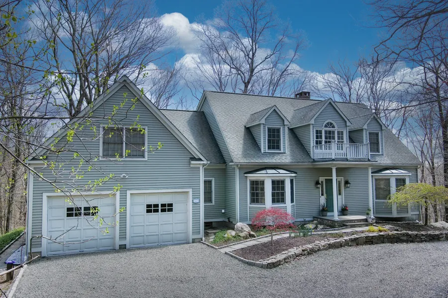 Welcoming and secluded Cape Cod home prioritizes bright open spaces with picturesque views. The open floorplan living room/kitchen features a wall of glass creating unity between the interior living spaces and the external environment, blurring the boundaries between indoor and outdoor spaces. Kitchen has all new stainless smart appliances and light fixtures. Living room architectural details include interior columns, fireplace, built-ins and hardwood floors. Step outside onto a deck that spans the back of the home and listen to the stream and birds. First floor primary bedroom is en-suite with walk-in closet. Center hall is two stories with new chandelier. Three spacious bedrooms upstairs. Office with private entrance. Family room on lower level with fireplace is walkout. Beautiful turnkey 46 Casey Lane home abuts Ridgefield Open Space Marjoy Pond walking trails. Close to Ridgefield town center.