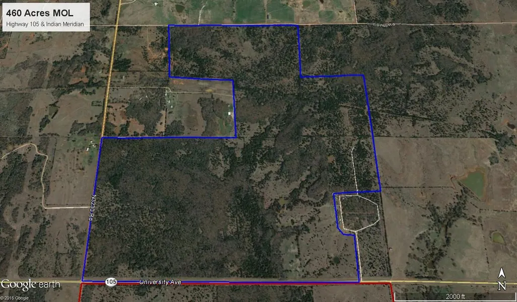 SEALED BIDS TO BE OPENED ON SEPTEMBER 6TH AT 10 AM. Call today for details. Continuous 460 acres MOL with 2 ponds and mix of pasture and woodland. Rolling topography offer a great wildlife venue with deer & turkey plentiful. Property has not been grazed in over 4 years, so land offers ample grazing for cattle with mixture of bluestem and Bermuda and other native grasses. There is 3/4 mile of black top road frontage on Highway 105 for property, 1/2 mile dirt road frontage on Indian Meridian and 1/2 mile dirt road on College Ave on north side. Sale is for 5 different tax lots consisting of; 0011082 & 0011083 & 0011076 & 0011079& 0011078. Also included are 20 lots in the Ranchitos De Las Lomas Addition for an additional 13.20 acres MOL. Legal descriptions are; 07-16N-01E SW4 & 07-16N-01E SE4 LESS TRACT PLATTED & 07-16N-01E W2 NE4 & 07-16N-01E 38.68 AC IN NE4 NW4 & 07-16N-01E SE4 NE4 and lots 1 thru 10 & 20 in Ranchitos De Las Lomas and lots 1 thru 9 in Ranchitos De Las Lomas 2nd. There is one lot that is cut off from all the rest.