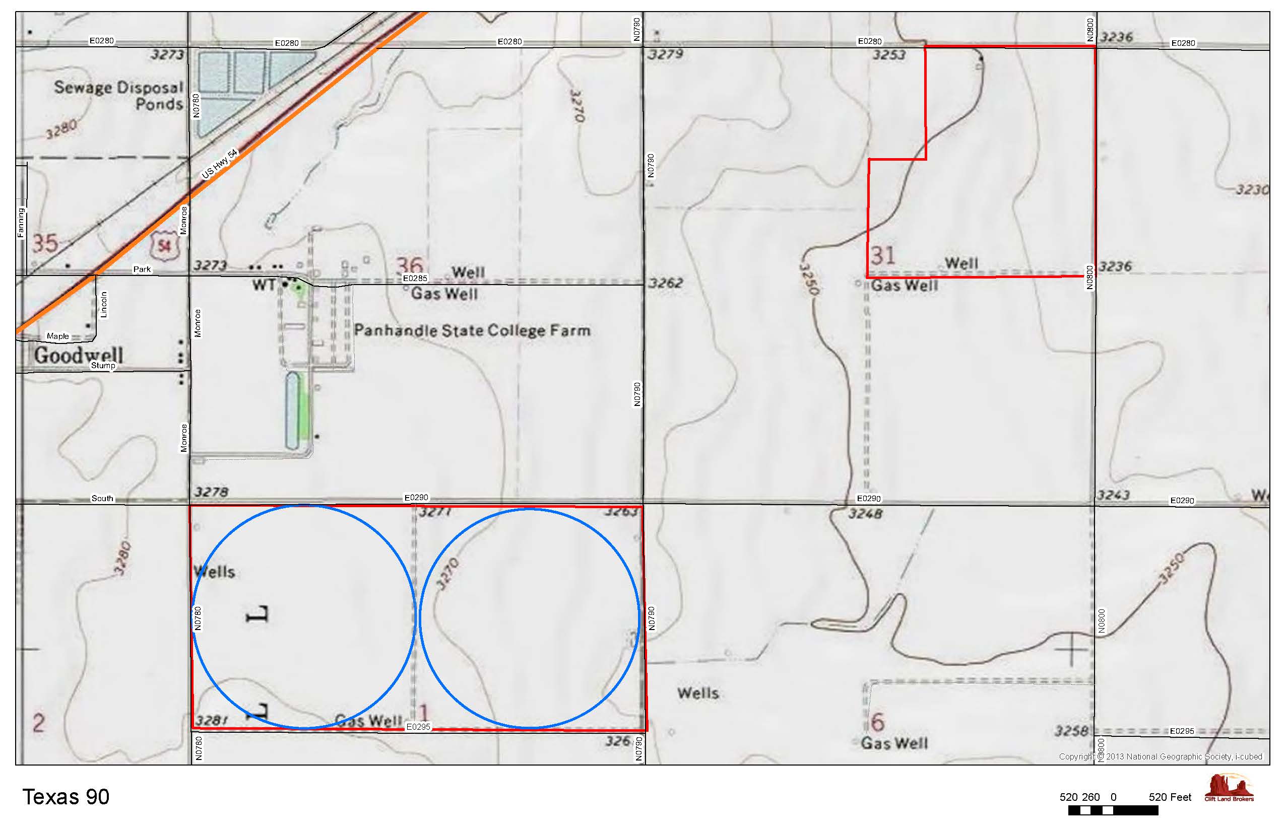 This 440 +/- acre farm Located just south of Goodwell, Ok is a very well cared for and has been maintained as well as any farm in the region. There are 3 irrigation wells, producing 600gpm utilizing 2-120ac acre valley pivots. All the irrigation motors on the farm convey with the sale of the farm. The farm has highly productive class A clay loam soils. Both farms have been very productive for the family, and both are ready to go for next year. The growing wheat crop on the west circle can be purchased for the input costs and the west circle had manure applied in the fall of 2025. The north 140 farm was planted to milo. If you are looking to grow or to add a few acres to your farming operation this farm will not disappoint. If you are looking for an opportunity to add even more acres to a deal, there are other additional acres located adjacent to this farm that is owned by a neighbor that we currently have for sale. Those other properties have other irrigation wells that could be piped into the current pivot systems and add water to this irrigated farm.