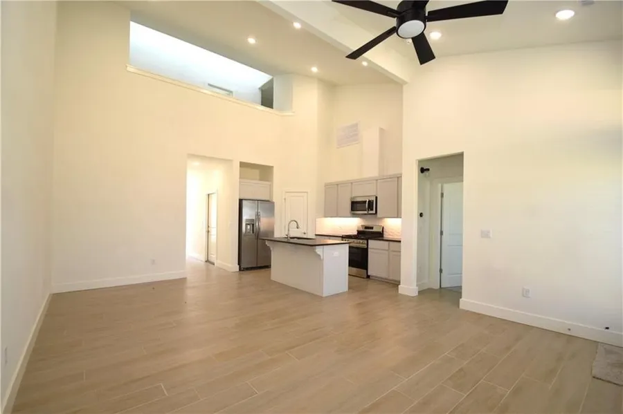 New modern design duplex! Also included brand new side by side stainless refrigerator, washer, and dryer. This 3 bed 2 1/2 bath plan has an open living concept with tall ceilings and tons of natural light. Kitchen has granite countertops, stainless appliances, a large pantry, and a gas range. Primary suite is on the main floor and has a beautiful walk-in shower and a large walk-in closet. Two bedrooms upstairs with a full bath and landing area. Wood look tile in the main living areas, 2" faux wood blinds, extra storage in the upstairs attic. Property has a private back patio and wood privacy fence. Owner must approve pets and no smoking.
