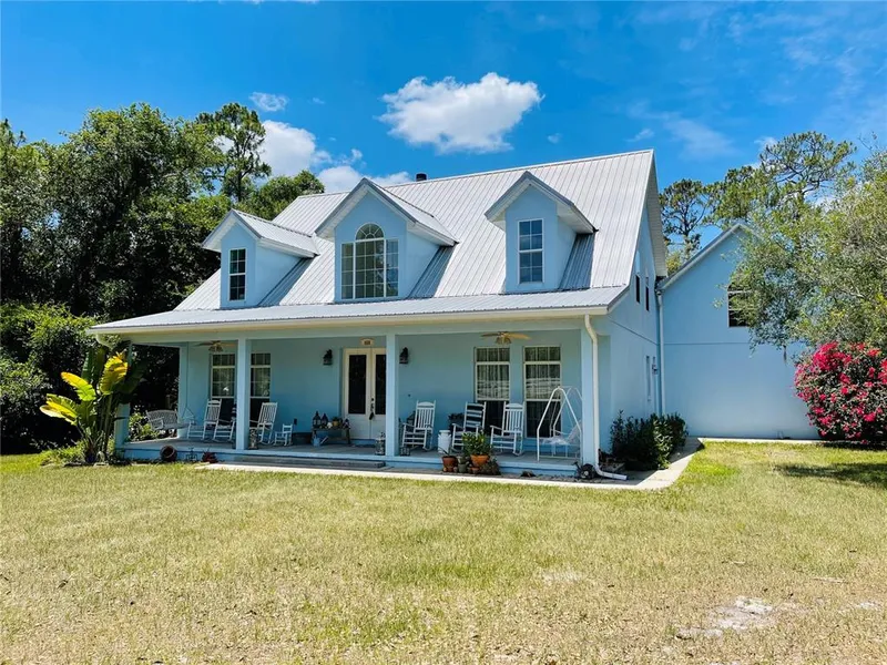 You won't want to miss this! Custom built Cape Cod style home on 2.5 acres in Osteen!! This home offers a lot of country cottage style that makes you feel welcome upon entry. Do you love to entertain? This home has the perfect set up with an open floor plan between the living room and the kitchen. The living room offers a stone fire place to gather around. The kitchen offers new appliances that include a double wall oven! Master bedroom is located on the first floor and 3 more bedrooms on the second floor. The upstairs offers a loft area in between the bedrooms. Two of the upstairs bedrooms offer dormer windows for added space. Don't forget the extra family room that could also be used as an office! Large dining room that currently has a table setting for 10. Metal roof. Covered patio that allows for outdoor activities even during the rainy days. The current zoning for this 2.5 acre lot could allow you to subdivide it if that sparks your interest! Come and see for yourself!