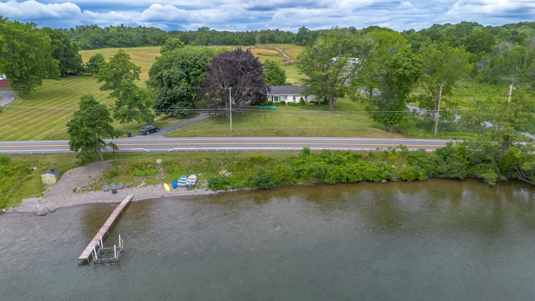 Impeccably maintained ranch home set of nearly 6 1/2 acres of land and almost 240 feet of private shale Cayuga Lake frontage. Set on a tree lined approach, the home features 4 spacious bedrooms and 1 1/2 baths, an attached one car garage, large dry basement with family room/rec room plus plenty of storage. The house is highlighted by the original heartwood floors throughout, original millwork, two wood burning fireplaces and more! Entering through the spacious foyer, the main level features a bright kitchen space with views out to the lake, 1st floor laundry closet, a formal dining room offering plenty of space to entertain. The main living room/great room extends to full width of the house offering expansive water views and access to the large three season room. All 4 main floor bedrooms offer great closet space, one with on-suite half bath, plus a separate den/office area. Property is being sold turn-key, fully furnished, with a successful short term rental history!