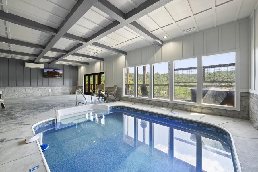 Welcome to your modern luxury mountain cabin, a stunning retreat built in 2022 that perfectly blends contemporary design with nature's beauty. This home has high potential for revenue on the short-term rental market for investors looking to add to their portfolio. This exquisite property offers an open floor plan that seamlessly connects the living, dining, and kitchen areas, creating an inviting space for entertaining and relaxing. Step outside to enjoy breathtaking picturesque views from two large, covered porches, ideal for morning coffee or evening gatherings. The outdoor fire pit adds a cozy ambiance, perfect for making memories under the stars. Indulge in ultimate relaxation with an indoor pool located in the spacious basement, complemented by a game room that promises fun for all ages. This cabin features a king suite on the main level for easy access, along with two additional king suites on the upper level, ensuring ample space and privacy for family and guests. With luxurious amenities and a tranquil mountain setting, this cabin is the perfect getaway for those seeking comfort, adventure, and serenity. Don't miss the chance to own this exceptional property! This property is on a shared well.