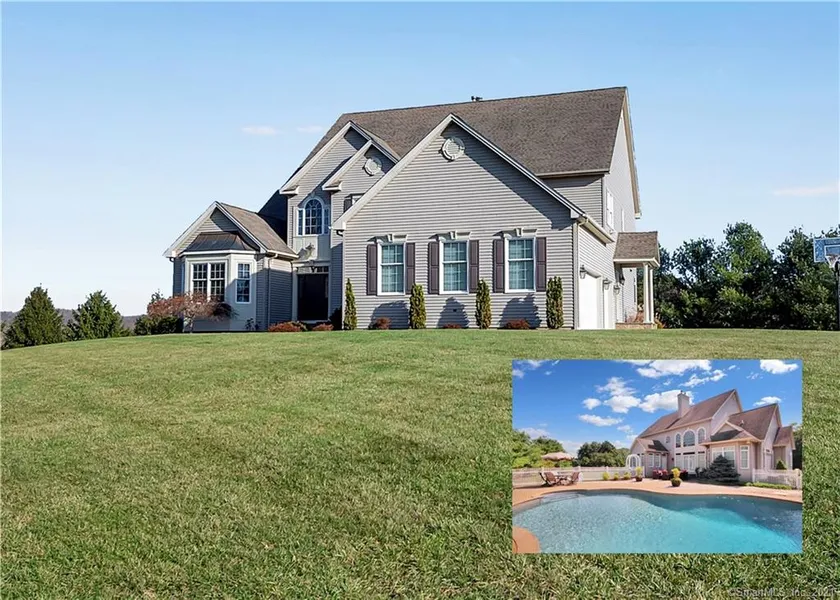 Beautiful contemporary colonial with a pool! Every detail was considered when designing this meticulously maintained home. Main level features grand entry, formal living room/home office and dining room with wet bar. The updated kitchen has granite counters, a large center island with seating for four and newer stainless steel appliances. Kitchen opens to a dining area and sun room with gas fireplace. The great room boasts vaulted ceilings, two story windows, a gas fireplace and custom built ins. Main level master suite has tray ceilings, a luxurious bath with steam shower and walk in closet. Mud room, laundry and a half bath are also available on the first floor. Upstairs you will find a lofted sitting room, three additional oversized bedrooms and two full baths. Outside you will find your oasis! An in ground saltwater pool with large paver patio and endless views.