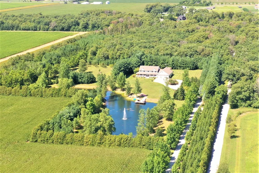 Escape to your own private retreat with an updated country home on over 20 wooded acres. The 4+ bedroom, 4.5 bath home with a big wrap-around porch is nestled amidst lush woods and graced by the tranquility of a serene pond with a private dock and lighted fountains. Welcome to a world where modern comfort meets rural living and natural beauty. As you enter the property through the ornamental gated security entrance, you will drawn down the beautiful tree-lined lane to what is called Black Walnut Farm. The dozens of walnut trees, as well as numerous other species of oaks, maples, hickory, pines and many planted fruit trees, create a beautiful and natural wildlife lovers' paradise. Immediately upon entering the property, you will be impressed by all the thought and care that was involved in developing this incredible country estate. Many details of the natural and landscaped areas of the pond and yard will provide much enjoyment outdoors. The waterfront dock, the wood firepit with gas starter, the covered porches and decks, the grilling and dining area, pool, hot tub and miles of wooded walking trails are just some of the property's features. There's even a private shooting area and plenty of deer, turkey, waterfowl, and small game if you enjoy shooting and hunting sports. The oversized attached garage is perfect for hobbyists, car collectors or just to house your vehicles and toys. The separate large garage provides additional storage space and has pens and a small pasture for the two pet goats currently living on the property. Inside, you'll find a spacious, partially open-concept layout that makes great use of the almost 6,000 square feet of finished living space. Plenty of windows allow the living areas to be bathed in natural light and provide great views. The big dine-in kitchen is a chef's dream, with a center island cooktop, bar seating, granite countertops, ceramic floors, stainless steel appliances, and ample storage. Imagine sipping your morning coffee from your coffee bar in the breakfast nook or on the front porch overlooking the peaceful pond. The main level also boasts a living room, family room, a bar/reading/office area and a yoga/meditation room. One of the 4.5 baths and an off-garage mudroom with hall lockers are also on the main floor. Upstairs is the primary suite, complete with a decorative fire accent, a spa-like bath, big walk-in closet, and dressing or sitting area. Three additional bedrooms and two tastefully appointed modern baths provide plenty of space for family, friends, or guests. Each bathroom is tastefully appointed with modern fixtures, and one has access from one of the bedrooms. A second-floor laundry is an added bonus for living convenience. In the partially finished basement, there is a living area, a gym, a craft room or workshop and another bathroom in construction. The new owner may have some input on the finishing touches. Outside, the expansive deck offers a perfect spot for alfresco dining while taking in the wooded views and the soothing sounds of nature. Explore your own private forest or spend lazy afternoons fishing by the pond. With over 20 acres of land, the possibilities are endless. This rural haven provides the perfect retreat from the hustle and bustle of city life. Don't miss this opportunity to make this peaceful oasis your own. Your dream country home awaits! Contact the listing agent for an appointment and private showing.