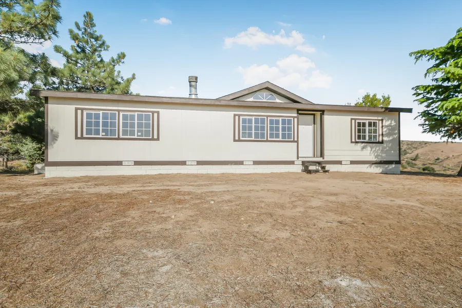 Freshly painted inside and out, this beautifully updated home welcomes you with crisp new colors that perfectly complement its breathtaking setting. Step into the fully remodeled kitchen, where brand-new cabinets, countertops, stainless steel appliances, sink, and fixtures offer both style and functionality. The dine-in kitchen is framed by an abundance of windows, flooding the space with natural light and showcasing the incredible panoramic views that surround the entire home. Brand new vinyl plank flooring runs through all common areas and bathrooms, while soft new carpet adds warmth and comfort to each of the spacious bedrooms. Updated light fixtures and new faucets, toilets, and showerheads in the bathrooms ensure a modern, move-in ready experience. The home also features a cozy wood-burning fireplace in the living area, an indoor laundry space, and energy-efficient dual-pane vinyl windows throughout. Outside, the lot around the house has been cleared of brush and weeds, making way for potential landscaping or expansion. Situated on over 5 acres and serviced by a private water company, this property includes a 20-foot container for additional storage and offers unmatched privacy and VIEWS from every angle--truly, it's hard to find better. The wide-open backyard is a blank canvas, ideal for creating your dream outdoor space. All of this is located in a quiet, peaceful setting with endless potential. This is a rare offering--come see the property and experience the views for yourself!
