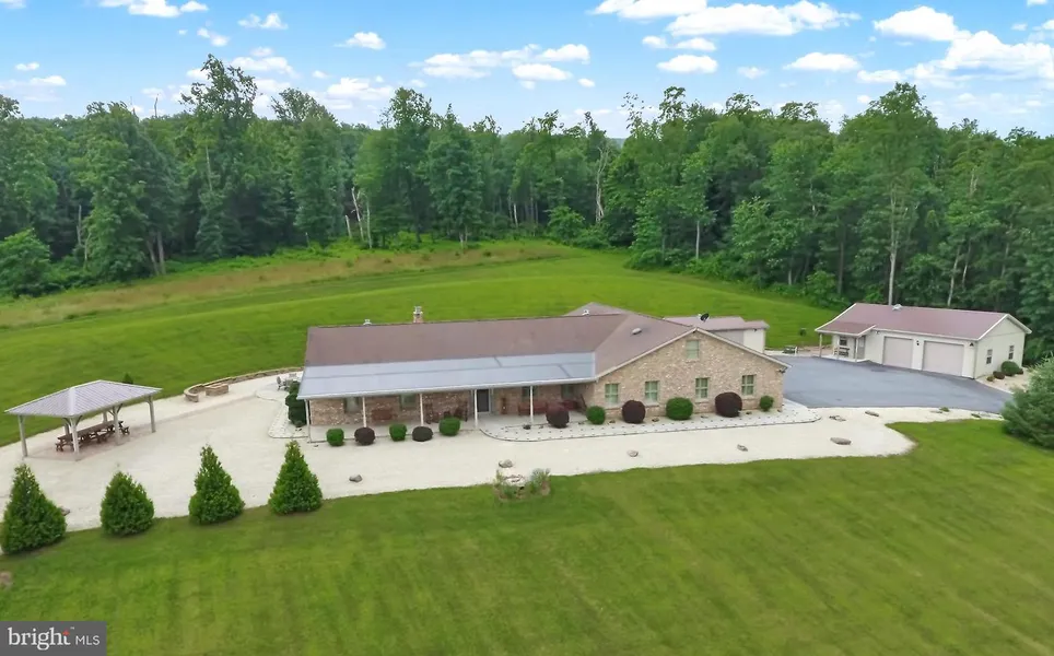Seller is offering a $2,500 Bonus to the agent bringing a qualified buyer! ***SELLER IS MOTIVATED!***Priced below current appraisal of $630K = INSTANT EQUITY!!! Take a beautiful, picturesque journey to the house of your dreams -- a one-floor wonder that allows you to soak in the sun, bask in the Great Outdoors, and luxuriate with your family and friends in this spacious Great Indoors. Here, the woods and wildlife are your closest neighbors, and tranquility and beauty are constant companions. Admire the lush landscape and scampering forest animals from a comfy seat on a front porch roomy enough for almost every farmer in Perry County to while away the hours with you. The amenities and upgrades within the home are as expansive as those lush forests beyond its doors. The home is graced with a coveted open floor plan that allows for large parties, easy mingling and family to getherness. The home was built to last, and its Pergo floors, exposed brick walls, and neutral colorsmake it a welcoming canvas ready for your unique decorative touches. Rustic accents combine with top-notch additions to offer a whole new level of luxury in an upscale country setting. Graced with a southern exposure, golden sunlight pours in and warms every corner of this hearth and home with natural solar heat. The centerpiece of the home is an airy kitchen with a tall brick pillar, housing a red brick hearth oven and a fireplace converted to a toasty wood stove. The pizza oven was built by Lancaster County craftsmen and a local craftsman. Memories of a savory 22-pound fresh ham and a 20-pound salmon cooked in the oven are harbingers of the delicious aromas to come. The cavernous kitchen has colorful Tiffany-style pendant lighting, a long eat-in bar, a vast expanse of granite countertop space perfect for baking and multi-course food preparation, and large, ultra-modern stainless steel appliances. The fireplace was converted to a Quadro-burn woodstove with a fan, and a unique flue system that allows oxygen to be drawn from the outdoors instead of the air in the room. Mantels are made of rich cherry which was harvested from the property. The kitchen cabinets are solid cherry with walnut inlays, and all custom-made by a Bloomsburg-area craftsman. Appliances are all top-of-the-line, and granite countertops, harvested from a quarry in Gettysburg, are the gleaming crowning touch in the kitchens and bathrooms. A sunroom, built on a floating floor instead of a slab, is an oasis of calm, with a gas heater in the cornerfor an added infusion of warmth. The sliding glass door in the hearth room leads to a welcoming patio and picnic pavilion, sporting a retractable awning for shade, and a firepit for light, and a cozy escape from the cold. A separate building can be used as a workshop, large food prep area such as canning or just preparing for that big holiday party, has a big walk-in cooler. The shop has its own gas heater and small water heater. The "work shop" building includes a two-car garage withoverhead doors, and acrylic floors, making it perfect for a wood-working shop. Pull-down stairs are in the garage of the woodworking shop. A security system alerts you to approaching guests, and exterior spot lights have motion detectors that illuminate the area with movement. With security, storage and scenery galore, this exceptional retreat is built on what matters~family togetherness, the finest raw of materials, the highest quality craftsmanship, and the most picturesque views of nature. Pull up a chair and make this retreat your home in the forest! *******Pre approvals required for all showings******* Owner is motivated! Bring offers!