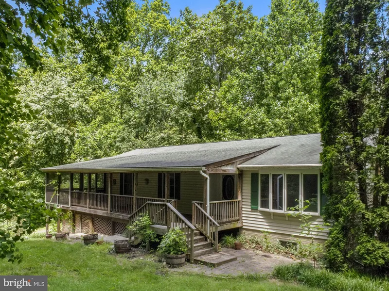 Nestled down a quaint, tree lined drive sits a 3 bedroom, 2 bathroom home on 7+ acres of sublime tranquility, peace and privacy. Welcoming, covered wrap around porch. Hardwood floors in the Living and Dining Rooms. Lower level with space to finish. Working wood stove. Single car garage with an incredible amount of additional space to use as work-space or storage. A two level Studio sits in the rear of the property and has electric, HVAC, and seasonal plumbing. The main level is spacious, bright, and open... a perfect area for an art or woodworking studio. A separate entrance on the exterior of the homes leads to the upper level of the Studio with a covered deck - an inspirational space that is drenched with sunlight and could provide the perfect art room, reading room, craft room, etc. A covered pavilion could make for a wonderful outdoor entertaining area or a place to house your extra vehicles, RV's, etc. Move into this home as it is or put your own personal love and modern updates to create the home of your dreams!