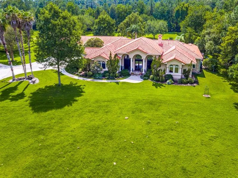 Come home every day to your own resort! This fabulous custom, single story, sprawling, light filled home is magazine worthy with a tile roof, huge pool (grotto included), double paned, picture windows and is situated on over four acres! The kitchen is a chef's dream with amazing custom, curved cabinetry,six burner Viking stove, SubZero refrigerator and Thermador convection double oven. The formal living area adjoins the formal dining and overlooks the pool and acreage through a "wall of windows". The master suite, with kitchenette, is huge with custom glass curved showers, and could even be used as mother-in-law/guests suite, as the other bedrooms have separate baths. The huge mudroom and utility rooms have their own sinks. There is a 30x60 barn with parking for an RV and craft room. This is ultimate privacy with many trees and a home built to last with 70+ piers. A/C replaced in 2015. This home is truly a showplace! Make an appointment for your private tour today!