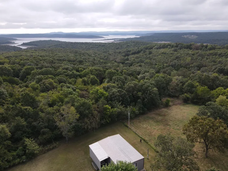 Check out this hard-to-find gem, bordering Corp of Engineers frontage on the famous Bull Shoals Lake. This immaculate property is the ideal getaway or vacation destination for so many reasons. Secluded and privately tucked away in the stunning wooded hardwood hills sets the well-maintained metal building with a full apartment. The grounds are very well kept and appealing with a spacious yard, some pasture and completely surrounded by large hardwood timber. Ample storage sets inside of the massive 30X50 red iron shop building fully insulated with a large bay door, loft storage, electric, septic, and water. A 24X30 concrete pad provides ample room for parking and entertaining. Inside the shop is a cozy apartment complete with a bathroom, kitchen, and a spacious open living/dining/bedroom. For additional storage, a 12X30 storage lean-to sets on the side for trailers, campers, or any other equipment you may need. With the location and layout of this phenomenal place, it lends itself to being an excellent rental for some return on investment. The land rolls gently with some small draws and valleys but also some fantastic flats and level areas perfect for food plots. The hunting has been very productive for several decades and the thick cover and wooded ground around the property just adds to the habitat. A spring-fed pond sets just below the building is full of goldfish and provides adequate water for the resident wildlife. Among the rolling timber are several excellent hunting spots with deer trails and travel corridors galore. This setup is incredible for the bowhunter in your life. Setting just to the east is a massive 90 +/- acre peninsula of Corp of Engineer land that is wooded and loaded with deer and turkey. This provides additional acreage for all your hunting, hiking, camping, and other recreational desires. The walk to the lake is gentle and enjoyable. Bull Shoals Lake is a renowned fishing and boating lake known for its natural beauty and recreational opportunities. Not only does this property border the Corp but also is located just 3 miles from the Peel Ferry and Highway 125 Marina. Whether you have your own or need to rent a boat or jet Ski, looking for groceries, or need to fuel up... it's all at your fingertips and just minutes away. Building your dream home, looking for that ultimate vacation get-away, or trying to find that perfect hunting camp for your family and friends??? You just found the ideal property. Call today for your private showing of this amazing lake retreat.