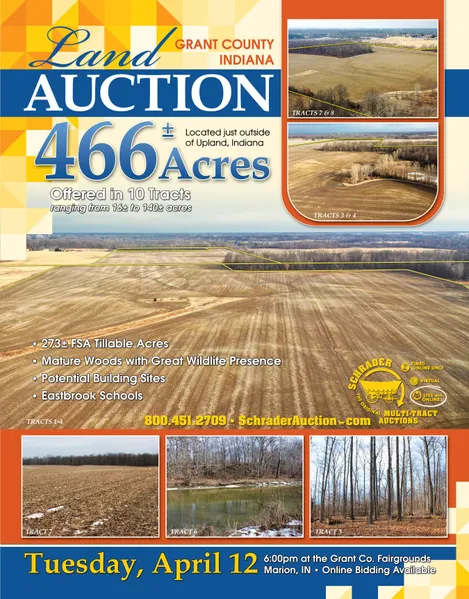 TO TRACTS 7-9: From I-69 Exit 255 and St. Rd. 26 - Travel East on St. Rd. 26 for 3 miles. At the stop sign continue to the left on St. Rd. 26 for 2.5 miles, continue to the right at the intersection of St. Rd. 22 and St. Rd. 26 and the property will be on the left.