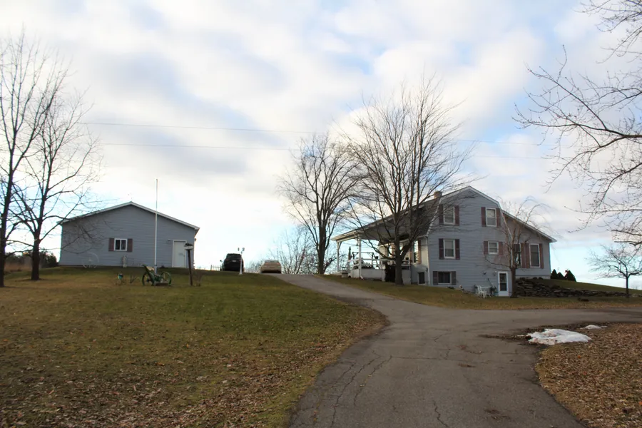 Scenic horse farm that butts up to state land offers 3 bedrooms, 2.5 baths. Master suite on first floor with full bath, large walk in closet and 36" doorways. Windows wrap around the house allowing all natural light and views of pastures and rolling hills. 32x40 Pole Barn for all your tractor equipment and car! The Red Horse Barn 32x48 with 3 stalls and a tack area. Both barns have water and electricity. Spring fed pond, enclosed pastures and fencing for horses to roam! This quaint little town has Beautiful Churches and The Octagon Museum! Home is wired for a generator.