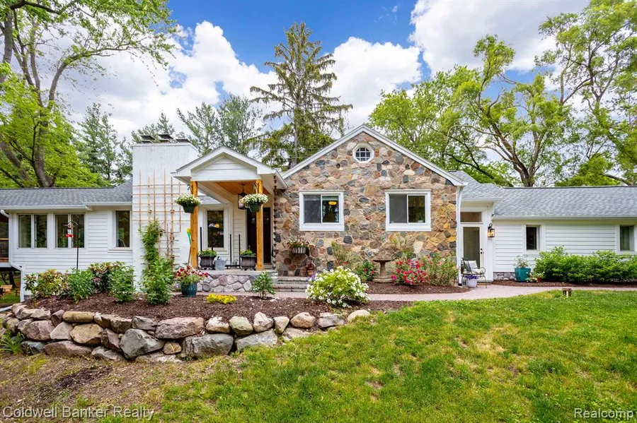 OPEN HOUSE SATURDAY ONLY - please park in driveway or in front of garage doors or on grass along side the shed. OFFERS DUE ON SUNDAY 6/25 BY 12:00PM. This 1940's raised ranch has been completely updated and is nestled on a beautiful 1.4-acre lot with a pond perfect for fishing, kayaking and skating off the new dock. Located on a private road, this home sits back off the main road offering plenty of privacy, and is just a short drive to downtown Northville, schools, shopping, and freeways. Boasting 2200 sq ft of living space, this home features 4 bedrooms, an office/den, and 2.5 bathrooms with an open concept design. A brand new kitchen addition, complete with wood floors, a fire pit, freshly landscaped wildflower and vegetable garden, help to create a warm and welcoming atmosphere. In addition, the home includes a laundry room with a dog shower, California closets, new wrap-around decking and pavers, and a workshop off of the 2-car garage. The walkout lower level features a bedroom, spacious flex room, and a full bathroom which is plumbed for finishing. This home has also been updated with a new roof, siding, furnace and AC, and the seller has even connected the property to city water and sewer. Whether you're looking for a peaceful retreat or a place to entertain family and friends, this home has it all with the convenience of being close to everything you need!