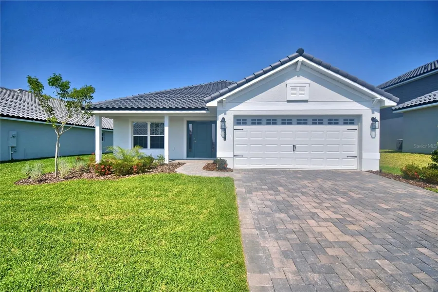 This 2200 Sq ft home has 4 bedrooms and 3 baths, 2 car garage, lots of entertaining space and luxurious details throughout! Upon entering you will enjoy the open concept great room/dining room/kitchen with 10’ ceilings, wood look plank tile in main areas, granite countertops throughout, 5 ¼ inch baseboards, wainscotting in dining room and much more. The owner suite is spacious with Tray Ceiling w/crown molding. Ensuite has double sink vanity with extra storage drawers, linen closet, tile separate shower w/glass door, nice tub, etc. The home also has a second owner suite with ensuite and a large walk-in closet. 2 other bedrooms in the home share a oversized bath with linen closet, tub-shower combo, separate toilet, double sink vanity with storage drawers. The exterior of the home has a tile roof and patio paver driveway, and patio paver covered lanai. This community is gated, has a gorgeous clubhouse with fitness center, pool overlooking the lake, basketball court, tennis court, playground, and community boat ramp. Photos are of a finished 2200 . Actual colors and finishes may vary.