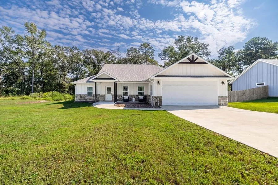 3 bed/2 bath home built in 2023 located 1 mile outside the city limits. Neutral paint colors and beautiful wood accents! Landscaping equipped with sprinkler system, and an inviting back patio with plumbing and gas hookups. Tankless water heater, gutters and much more!