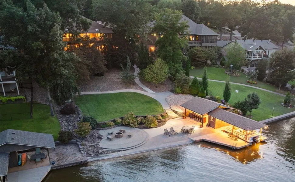 Welcome to your dream lakefront retreat, a beautifully remodeled haven offering luxury and comfort. The home boasts an expanded kitchen with quartz countertops, a double oven, and new stainless-steel appliances. The main-floor master suite offers a serene escape with a private sitting area and lake views, while the fully finished basement features a 357sqft bonus room, charming bunk room, two additional bedrooms, and extensive walk-in storage. Step outside to enjoy two expansive decks, perfect for entertaining or soaking in tranquil lake sunsets. The outdoor kitchen, complete with a built-in gas grill, is just steps from the water, where you'll find your private boat dock, fire pit, and lounge area. The meticulously landscaped yard includes four fruit trees, a gentle slope to the water, a paved walking path, and a cart path for easy access from street to shore. With parking for 10 cars, new HVAC, new water heater, and a new roof, this home is low-maintenance and move-in ready for lakefront living at its best.