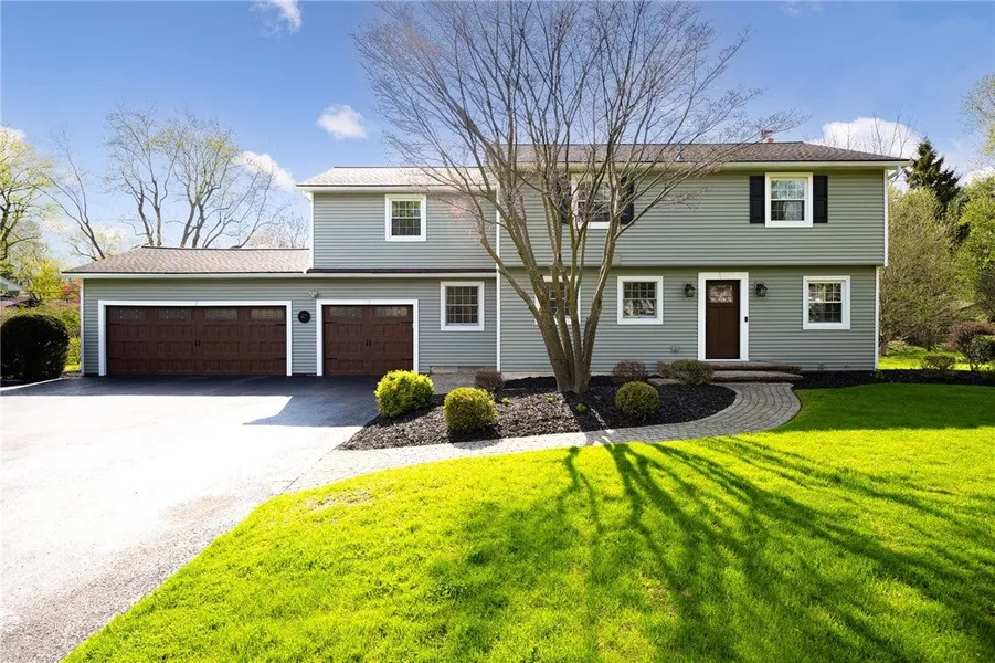 PITTSFORD: Welcome To This Charming And Meticulously Maintained Colonial In The Sought Out Sherwood Association! This Gorgeous Home Boasts 4 Bedrooms, 3 Full Baths With An Attached 3.5-Car Garage. Primary Bedroom Has Jack and Jill Walk-In Closets! Completely Updated/Remodeled Kitchen With Custom White Cabinetry, Luxurious Cambria Quartz Countertops, A GE Monogram 48-Inch Dual Fuel (Gas Cooktop/Electric Double Oven) Range, A Wine Refrigerator, Stainless Steel Appliances, And A Large Eat-In Breakfast Bar. A Custom-Built Entryway Cubby Organizer With Shelves, Hooks, And A Storage Bench Adds Both Style And Functionality. First Floor Laundry And First Floor Full Bath With A Walk In Shower. 4 Season Sun Room Fully Enclosed, Insulated, And Heated With Ceiling Fan And Skylights! Perfect For Year Round Enjoyment! Partially Finished Basement With A Large Rec Room And Walkout Full Door, Offering The Potential For A Teen Or In-Law Suite, Potential 5th Bedroom! 2 Fireplaces, Wood Insert On First Floor, Gas Insert In Basement. The Backyard Is Made For Entertaining, With A Huge Beautifully Designed Brick Patio And Trex Deck Complete With Updated Electric, Perfect For Summer Bbqs And Cozy Get-Togethers! The Garage Provides Plenty Of Space For Vehicles, Storage, With An Electrical Sub-Panel, Exhaust Fan, Mechanics Pit And Welder Outlet. All New Siding, Garage Door, And House Door Replaced In 2019, With Most New Windows. Garage Door Opener is WIFI Enabled - Control Doors From App, MyQ. Complete Roof Tear-Off In 2013, Hot Water Tank (Gas) 2012, Furnace (Gas) 2018, A/C In 2024. 200 Amp Service. Fully Fenced Yard With 5 Ft Fencing, Underground Irrigation System. Walk To Pittsford Village On Sidewalks. Shopping, Restaurants, 490 Expressway, And More All Close By! Allen Creek Elementary, Calkins Rd Middle School & Sutherland High School. Where Comfort Meets Style, Your Next Chapter Begins Here! Delayed Negotiations, All Offers Due Sunday, May 11, 2025 @ 12pm.