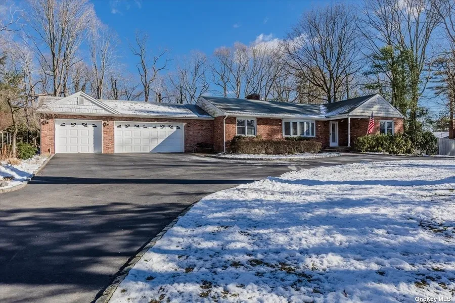 This Expanded 3 bedroom, 2.5 bath Ranch is beautifully set on one full acre of tree-lined property. A perfect home for entertaining! Featuring an eat-in-kitchen with granite countertops, center island and formal dining room. A bright living room opens to the den with a cozy brick fireplace. Sliding doors lead to an enclosed 3 seasons room that overlooks the backyard with with a fenced inground pool. A Fully finished basement comes complete with a sizable wet-bar, pool table and spacious room for game nights. An attached 3 car garage is perfect for car lovers and storage. The expansive circular driveway has an additional driveway to the left side of the house which is perfect for a boat or camper or both! Located close to schools, shopping, railroad, transportation, beaches and more... Come make this house your next Home Sweet Home.