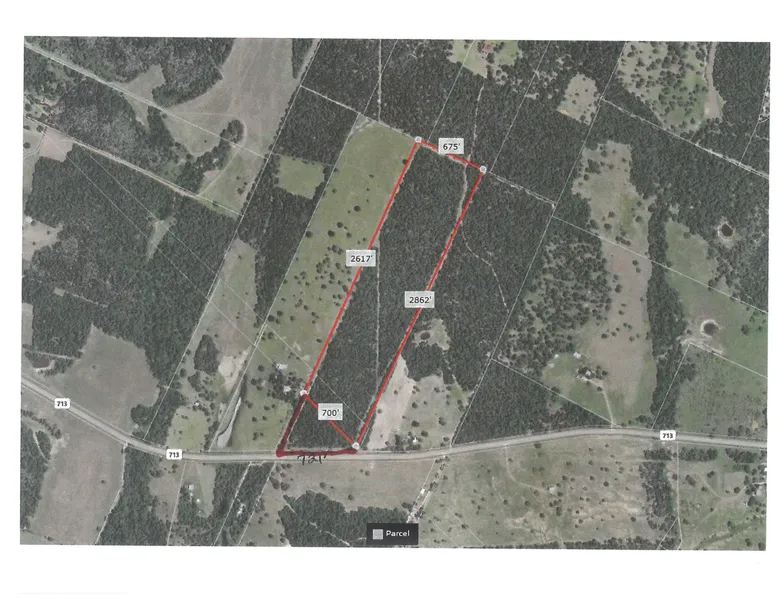47 +/- acres of raw land straddles the Caldwell County PID #29040 (8.9 Acres) and Bastrop County PID #21268 (38.50 Acres) line. Heavily covered with various types of and underbrush. Using an ATV or 4WD pickup you can easily drive around the inside perimeter and down the Bluebonnet Electric easement that cuts through the property. There is a 4" Aqua Water line on or near the property that runs parallel with FM 713. Buyer to verify Aqua Water meter set availability. About 15 miles north of I-10, about 27 miles south of Bastrop, and about 25 miles SE of Lockhart.