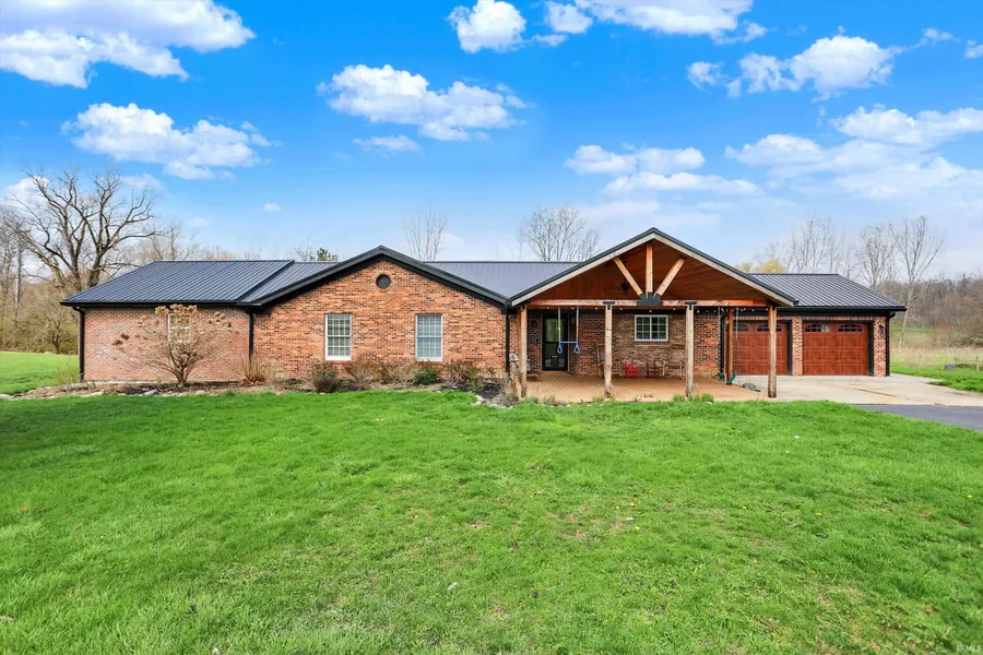 Welcome to your dream retreat! This stunning fully remodeled home sits on 12 beautiful acres just minutes from I-69. From the moment you pull in, you'll fall in love with the welcoming front porch and charming porch swing, perfect for peaceful mornings and relaxing evenings.Step inside to an open-concept layout featuring all-new flooring and a gorgeous kitchen with quartz countertops, all new appliances, and modern finishes throughout. The four seasons room is a cozy highlight, ideal for enjoying Indiana sunsets year-round.Every major mechanical has been updated including HVAC, tankless water heater, whole-house generator, and a complete water filtration system. Giving you peace of mind for years to come. The home and all outbuildings feature brand-new metal roofs. Outside, this property is fully equipped. You'll find a 2-stall horse barn with electric and private well, a large pole barn with electrical 200-amp service, storage sheds, and even an underground storm shelter.Whether you're looking for privacy, functionality, or just a little slice of country paradise, this property has it all. Don't miss your chance to make this incredible home yours!