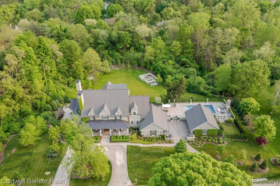 Absolutely stunning farmhouse style masterpiece built by Eric Guidobono on 1.78 acres close to downtown Northville! Quality and high-end finishes throughout such as Carrara marble, visual comfort lighting, Waterstone faucets, Restoration Hardware and Baldwin door hardware. Six bedrooms, five full and two half baths. Like a resort with in-ground gunite saltwater pool, hot tub room, sauna and steam room, wide plank wood floors on most of first floor, four fireplaces, custom cabinetry throughout the house, fenced backyard with terraces and fire pit. Jeld-Wen windows, imported stone exterior, smarthouse, 8 foot solid doors, two- 2.5 car garages with epoxy floors. Screened porch, sunroom, gourmet kitchen with all custom Mouser cabinets, Viking appliances, finished walk out with rec room, wet bar, wine cellar, 6th bedroom with bath, music room, and hot tub room! Third floor guest suite. Gorgeous wooded lot.