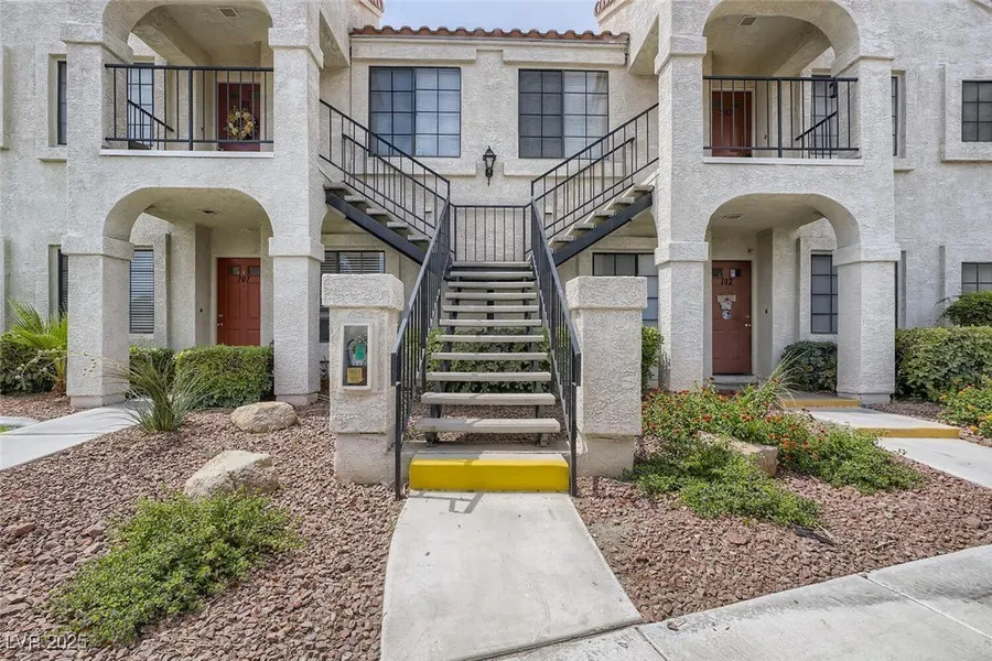 Second-floor 1-bedroom condo located in a well-maintained Spring Valley community with a bright layout and a spacious living area that opens to a covered balcony with storage. The kitchen features ample cabinet space, a gas range, and natural light from the front window. Laminate flooring runs through most of the home, with tile in the kitchen and bath. The primary bedroom includes mirrored closet doors and direct access to the bathroom with a tub/shower combo. The community offers mature landscaping, walking paths, and assigned covered parking. Nearby amenities include Smith’s, Vons, Target, Walmart Supercenter, Starbucks, and a wide range of dining options throughout the Spring Mountain and Decatur corridor. Close to Charlie Frias Park, Spring Valley Community Park, and minutes from the 215 and I-15 for convenient commuting. The Las Vegas Strip is approximately three miles away, offering additional entertainment and retail options.