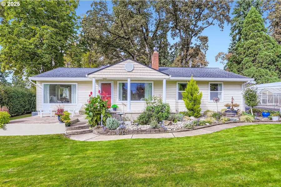 Charming, updated home with separate living quarters! Don't miss this exceptional property featuring a gorgeous, fully fenced, private backyard oasis with a covered patio. Inside, the updated kitchen shines with quartz countertops, stainless steel appliances, gas range, undercabinet lighting, and a custom 8'x 3' pantry with built-in electrical outlets. French doors lead directly to the patio and backyard. The main level boasts a spacious living room filled with natural light from large picture windows, as well as real hardwood floors (primary bedroom has hardwoods under carpet). The primary bedroom features double closets, and the family room includes a gas fireplace with custom Travertine tile and mantel. Additional highlights include a detached double garage, RV parking, greenhouse, storage shed, and beautiful mature landscaping. A major bonus is the separate lower-level living quarters with a private entrance, complete with its own kitchen (range + refrigerator)-ideal for multi-generational living, guest space, or rental opportunities. Conveniently located near parks, shopping, and commuter routes-this home combines modern updates with classic charm both inside and out!