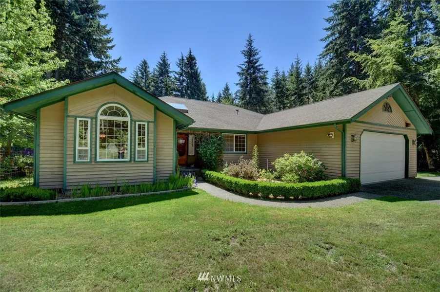 This well maintained one-story home sits on a private five-acre lot that boasts a beautiful, private park-like setting w mature landscaping, fruit trees, garden space. Features include a hardwood entry, open kitchen/family room combination w eating nook, walk-in pantry & wood stove. There is a separate lr/dr combination, master br w walk-in closet and an updated bath w quartz counter, double sinks, skylight and a door leading to deck. There are three additional br's all with closet organizers. This home features nice upgrades throughout w a heat pump, newer roof, new gutters, well w new water pressure tank & filter system, skylights, vinyl wood-wrapped windows. The private deck/patio features a large grape arbor full of fruit.