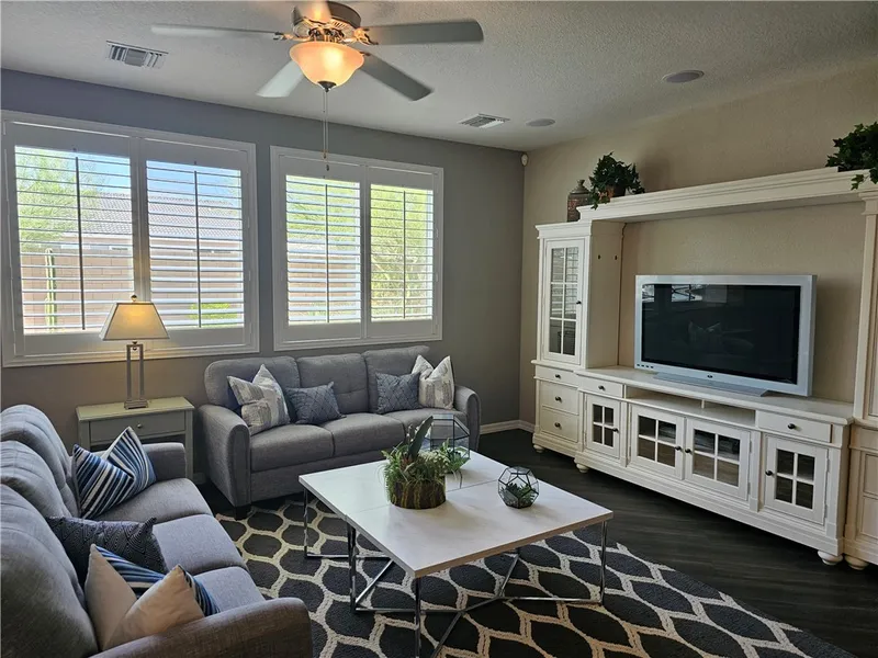 FURNISHED!!! The Wait is Over, Our MODEL Home is for sale!! So Many Extras we can't list them. This is our 1858 Model. We are converting the 3 Car Garage Back and leaving the extra half Bath and Constructing Office off the garage, everything is Air Conditioned. This Home has 3 Bedrooms, Office /Den and 2.5 Baths. Quartz Counters in the Kitchen and Primary Bath, Granite Counter in the Guest Bath, Custom Back Splash, You really have to see it. Beautiful Custom Stack Stone in the Office/Den, Whitewash Shiplap in Bedroom 2, Custom Lighting & Paint, Ceiling Fans. Surround Sound Speaker System in the Family Room, Pre Wired for a Security System. Professionally Landscaped Front and Back Yard with a Large area of Green Turf & Mature Trees. The Builder will Buy Down the Interest Rate. ALL FURNITURE is INCLUDED WITH THE SALE. Don't miss out on this one, so many extras and the Builder still has lots of incentives to offer.