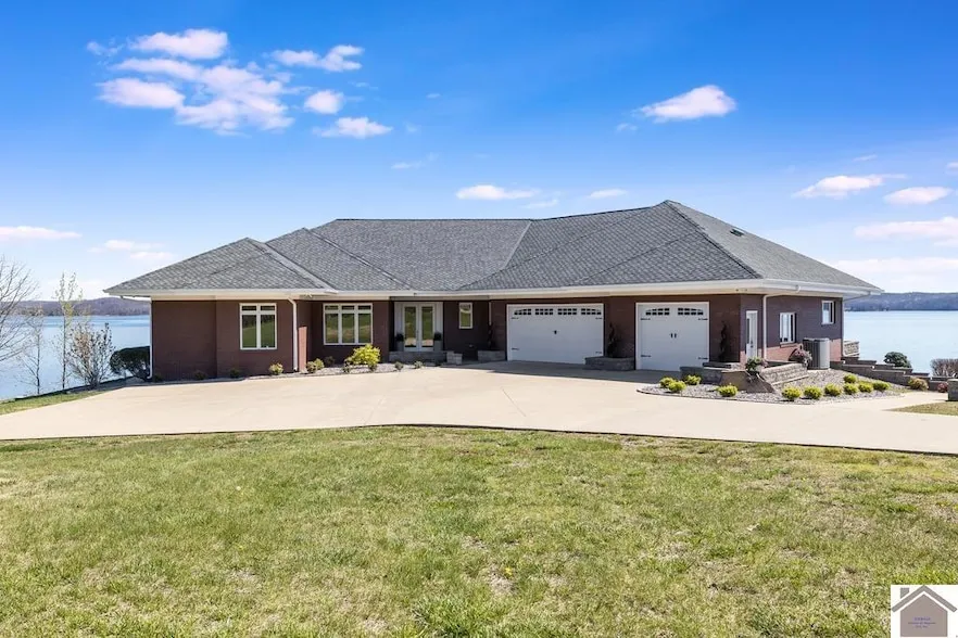 Welcome to lake living at its finest! 3.25 WATERFRONT ACRES! BEAUTIFUL, UNMATCHED, and UNOBSTRUCTED VIEWS OF KY LAKE! This exquisite lake home offers an unparalleled experience with breathtaking and picturesque views from all rooms on the main level. The well-appointed kitchen has luxury Viking stainless steel appliances, large island, and much cabinetry, as well as a butler's pantry. Thibaut grasscloth wallpaper in primary bdrm and office, and ceramic tint and custom draperies adorning the windows. Six bdrm, 3.5 bath, full basement. Exterior features a whole home generator, concrete drive, two slip covered dock, and so much more. This location is undoubtedly one with the best panoramic views of Ky Lake in Western Shores!