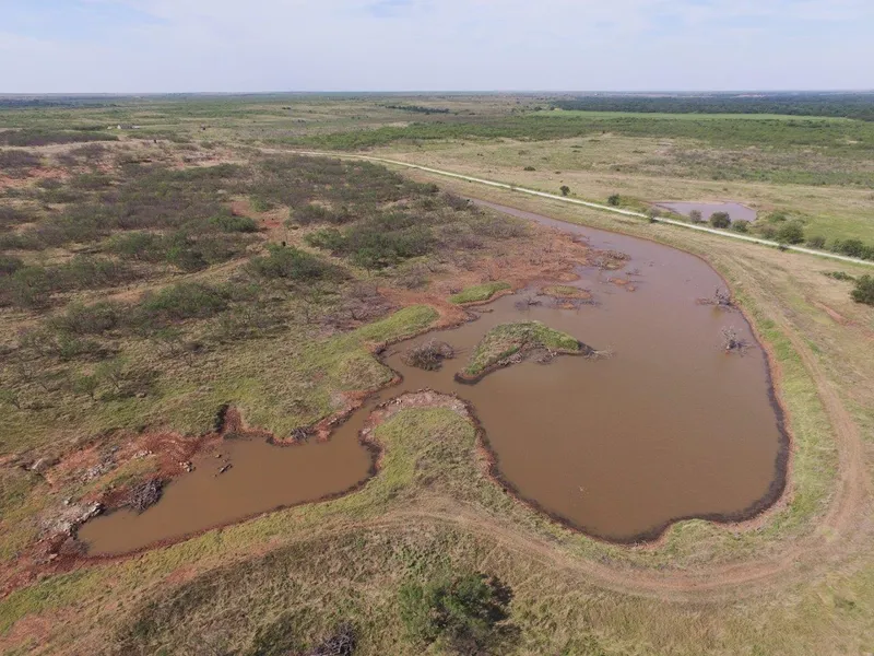 The land is primarily heavily wooded with mesquite with several natural cleared grass areas. Hay Creek extends through the south portion of the property. This area is densely wooded with hackberry, some hardwoods along with dense underbrush. Overall the ranch has good cover and habitat for wildlife. The topography is primarily rolling terrain. There are two large hills on the north and south portions offering great views of the property and surrounding landscape. At the southernmost portion there is a 40 acre field that was once cultivated, but has not been in several years. It could easily be converted back to farmland if desired.