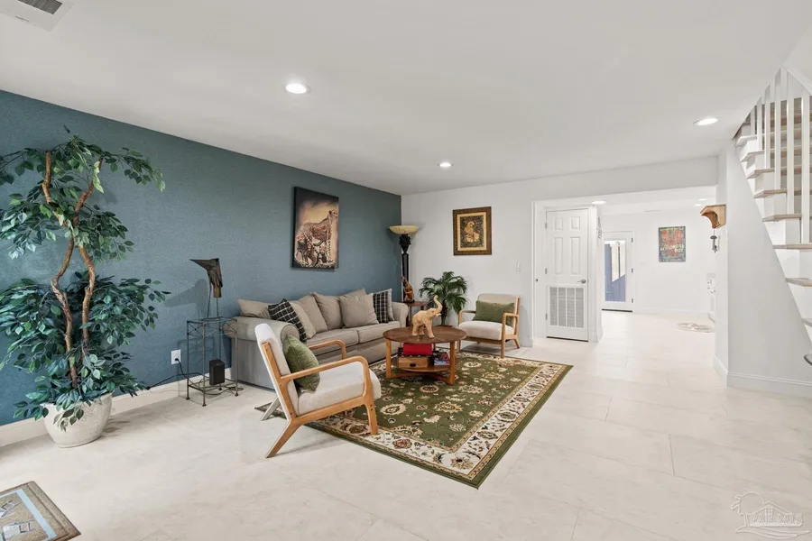 Light-Filled, Fully Remodeled Townhome in Perdido Bay Country Club Estates Step into style and comfort in this beautifully updated townhome featuring two spacious entertainment areas—a cozy TV lounge and a separate game or conversation space—perfect for hosting guests or relaxing in peace. The home boasts stunning tile floors and is tastefully furnished throughout, creating a move-in-ready haven. Enjoy a generous eat-in kitchen with quartzite countertops, white appliances, and abundant counter space. A charming half bath on the main level adds convenience for guests. Upstairs, you’ll find two master suites, each with its own exquisitely remodeled bathroom, complete with quartzite vanities and sleek glass-enclosed tiled showers. Every detail reflects thoughtful design and stylish comfort. The front of the home includes a spacious enclosed patio ideal for morning coffee, while the backyard is perfect for evening barbecues or gathering around a fire pit. With new impact windows and doors, along with a recently installed AC and water heater, this home offers peace of mind and energy efficiency. Located just 10 minutes from beaches, shopping, and dining, this townhome is your gateway to relaxed coastal living. Come see why this vibrant and elegant home is the perfect coastal retreat.