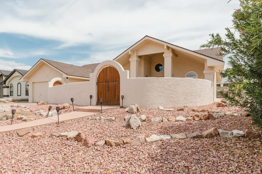Lovely 3 bedroom, 2 bathroom home located in the Gold Course area awaits! This is a rare one owner home and has been lovingly cared for and updated. Enter through the spacious front courtyard to find a cozy interior. The kitchen offers ample counter top space, upgraded appliances along with a bright dining area! Enjoy evening in the dropped living room with the pellet stove and access to the backyard through upgraded Marvin Infinity patio doors. The primary suite has custom built ins and a remodeled en suite! Out back, you'll find a xeriscaped yard perfect for entertaining. This home has owned Solar Panels as well!!