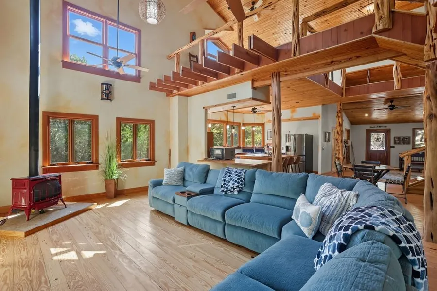 Experience Hill Country living with this extraordinary property, perfectly positioned on sprawling acreage surrounded by breathtaking Texas views and featuring a beautiful wet-weather creek. The primary residence showcases true craftsmanship and custom finishes throughout, with high ceilings, rich hardwood details, and expansive windows that frame the natural landscape. The open-concept layout flows effortlessly into a chef's kitchen with a large island and a living room with a cozy fireplace. Upstairs, the primary suite offers a balcony overlooking the rolling landscape and a spa-inspired bathroom with bespoke design elements that elevate everyday living. A charming casita provides additional comfort for guests, featuring a bedroom, bathroom, and kitchenette-ideal for weekend visitors or an income-producing vacation rental. With endless space to roam, this property is the perfect Hill Country retreat!