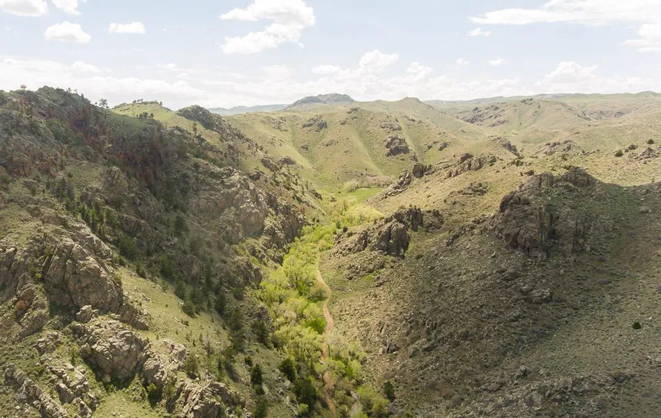The Sybille Canyon Ranch is located in the heart of Sybille Canyon on Highway 34 and is equidistant from Wheatland and Laramie, Wyoming. The topography of the ranch ranges from high rolling hills with large rock outcroppings to deep granite canyons with cottonwood lined creek bottoms. Water is abundant on the Sybille Canyon Ranch with several creeks, year-round springs and a well for the improvements. The property is ripe for fishing development and currently has brook and brown trout in the nearly two miles of School Creek that flow through the property. Numerous wildlife species including deer, elk, bighorn sheep, antelope and sage grouse can be found on the ranch. Improvements on the ranch include a 900+/- square foot home which is nicely finished and in a good condition, as well as a granary and a garage. The ranch is in the coveted area 7 for elk and has qualified for landowners tags for deer, elk and antelope in years past. Adequate water supply, good grass, easy year-round access and convenient location make the Sybille Canyon Ranch a very desirable piece of property to own.