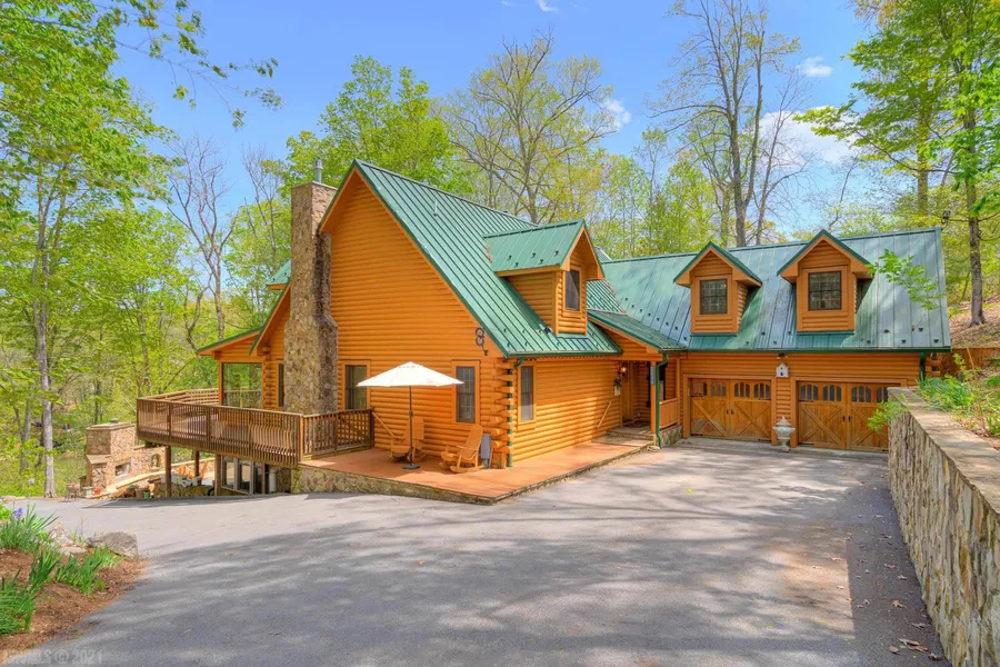 This magnificent lakefront property is the ultimate in lake living with features of space and quality rarely found anywhere. This Southland log home features an open concept living room with modified post-beam vaulted ceiling, floor to ceiling stone fireplace and Sheogo-eng. walnut hardwood flooring. The master bedroom suite includes a Jacuzzi hot tub, walk-in closet and a studio/hobby area with floor-to ceiling windows. Kitchen has stainless appliances, granite counter tops, open dining area, w/ access to screened-in porch and spacious deck. Upper level bedrooms are spacious w/ storage. The finished lower level is a huge, wrap-around room with special lighting that can be used as a studio, shop/workroom, auxiliary sleeping space or all three!!! Lower level provides access to a hardscape patio with built-in Jenn-aire gas grill, stone chimney fireplace, Sunbeam hot tub, and access to a beautiful stairway leading to the lake front dock. Shelter here or entertain galore; your call.