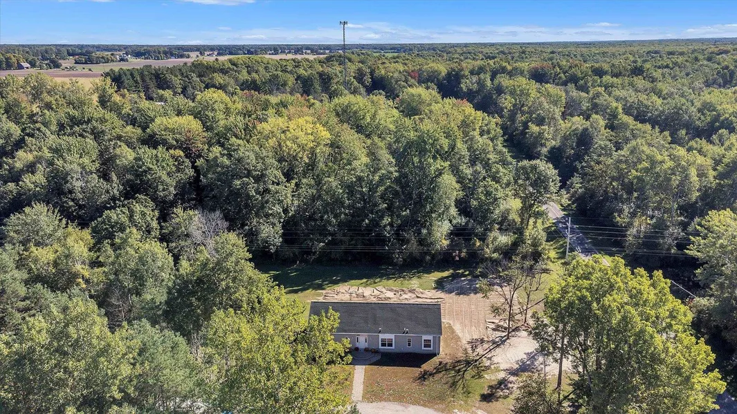 Marvelous on Meridian! Don't wait on this 3 bedroom, 3.5 bath, Main floor laundry, huge master bedroom, 1980 Sq Feet Ranch - BOCA "The Shelby" Modular Home with wooded 12.75 acres with trails and a pond!! Fantastic open Floor plan AND Every bedroom has it's own bathroom! There is even a dirt bike track with jumps in the back! Currently there is leveled out sand from the pond in the yard. Newer roof, new carpet, new appliances and Hot water heater! Plenty of deer and the blind is included. Lots of room to build a pole barn! Per county requirements -Pond permit will need to be transferred to new owner- Must be kept open until vegetation occurs. Public water and sewer Assessments transfer to buyer