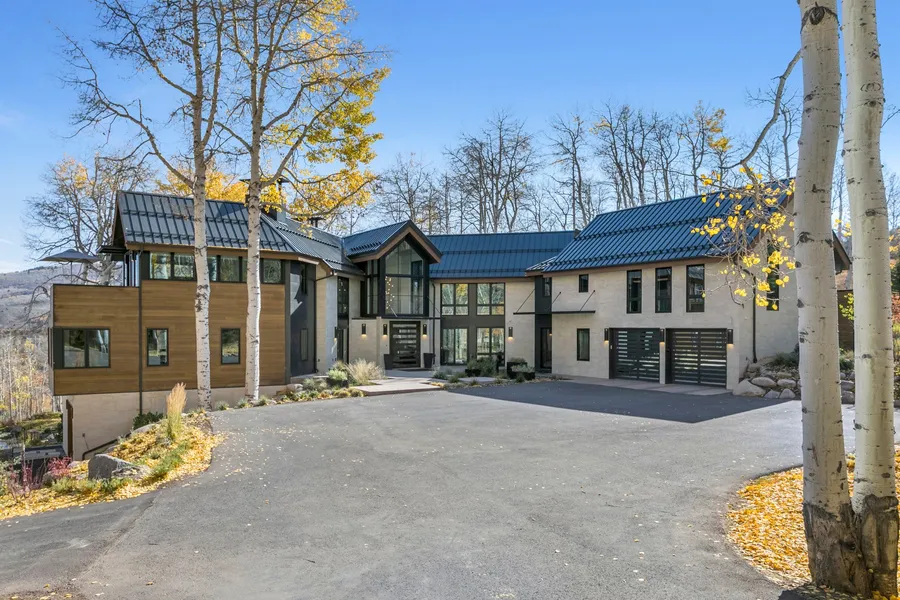 Inspired by a fusion of European modern alpine and California coastal architecture, the exterior is Italian tile with custom metal and cedar siding. A dramatic entry features a cascade of pendant lighting that seamlessly connects the upper and main level with ambient space, a theme that continues in the great room. Bathed in natural light throughout, the great room features a three-sided marble fireplace next to a custom cantilevered steel and oak staircase, and magnificent towering windows that let the wilderness setting steal the show. Relax outside on one of the many spacious outdoor decks next to a cozy firepit that sets the mood as elk, deer, fox, falcon, and hawk go about their business oblivious to your presence. Soak in the storybook scenery of century-old aspen, a tranquil reflection pond, and the communitys exclusive open-space preserve.