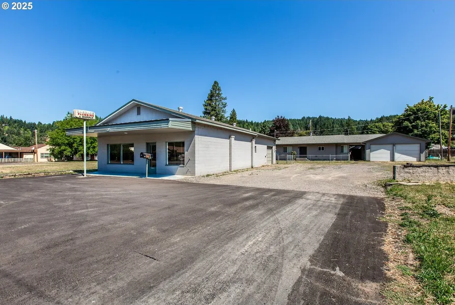 This home features a spacious floor plan of 1142 square feet with two bedrooms, a large utility room that could be a third bedroom, new flooring throughout, newer heat pump, newer wood burning stove, updated windows, a classic style kitchen with loads of storage, two bathrooms, primary suite and more! All of this on a large fenced yard with great separation from the commercial building. There is a separate oversized extended garage with high double garage doors and a pull through that leads to a covered detached shop for additional storage. The home was previously rented for $1500 a month, making this package deal a great value! The commercial building has road frontage and a house on a large lot on busy Highway 58! This unique opportunity offers two investment properties in one! The commercial building is 1920 square feet and features 660 square feet of store frontage with large picture windows, high ceilings, and shelving, an office, storage/break room, bathroom and a large 22x30 shop with 7 foot loading doors. All of this is in a prime location on almost half an acre with enough parking for all your customers and equipment! Don't miss out on this opportunity!