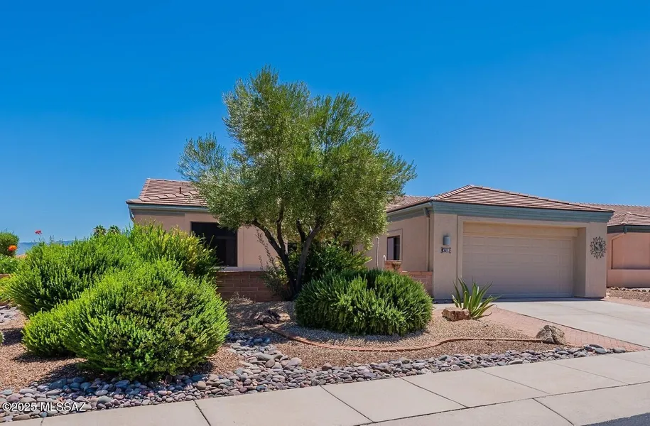Welcome to your desert home, tailor-made for a tranquil retirement lifestyle under the sun-drenched skies of Green Valley. This home encapsulates the best of modern living with the added bonus of sustainable energy from a solar system, resulting in reduced utility expenses. . The easy-care desert landscaping complements the Southwestern architectural style of this pristine property. Enter through a charming front courtyard featuring red brick and a custom wrought iron door. Inside, you'll appreciate the open-concept floor plan complemented by vaulted ceilings in the main living area, along with ceramic tile flooring throughout the home. The kitchen is seamlessly connected to the dining area as well as an adjoining room that serves as a terrific walk-in pantry. The main living space boasts a wall of windows and glass doors, allowing you to enjoy the stunning mountain vistas. A den or home office is positioned adjacent to the living area, providing the extra space necessary for various activities. Your primary suite features a large walk-in closet and a double vanity, along with mountain views. Step outside to discover the true value of this gem. You'll be captivated by the panoramic mountain scenery. The red brick seating area extends from the covered patio, offering numerous options for entertaining. The thoughtfully designed backyard landscaping incorporates a flagstone walkway, a red brick pony wall, and strategically placed river rock. Come take a lookwelcome to the Southwest!