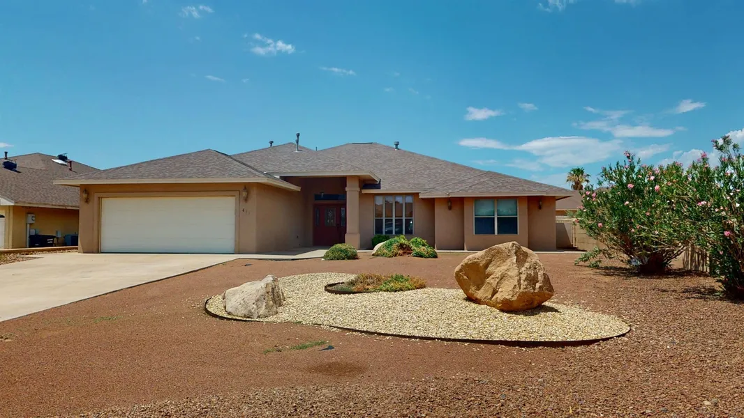 This 3 bedroom, 2 bath home sits at the end of a cul de sac, near the golf course. There is so much living space in this home, and you will love the large bedrooms. The kitchen is the center of the home and not only has a lot of cabinets, there is more than ample countertop space, and stainless appliances. The garage is huge offering added space for storing toys or a workshop area. The living spaces are separated by a beautiful see through fireplace, adding an ambiance to both spaces. The back patio is expanded, and wraps around one of the interior living areas. With several smart home features, gorgeous mountain views, and a low maintenance backyard, this home is a must see.