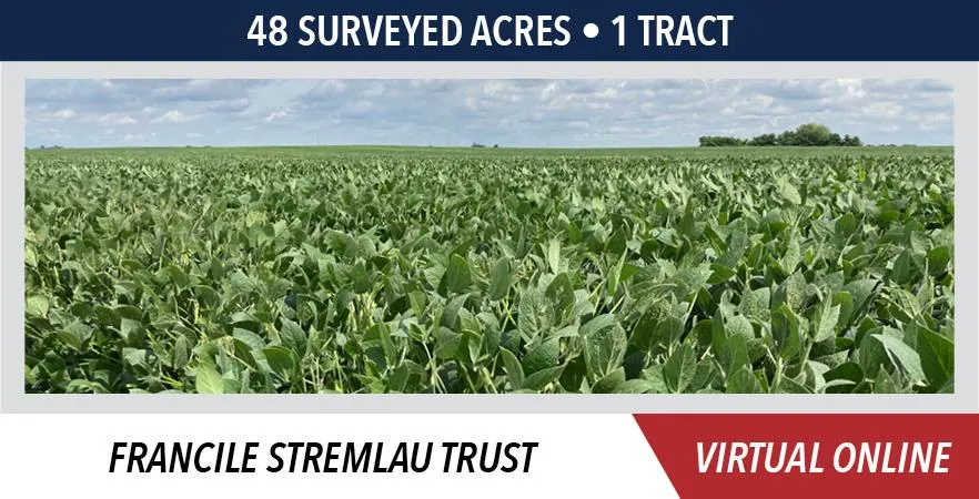 The property contains a total of 48 Surveyed Acres, will be sold in 1 tract, and represents highly productive Class A farmland with a 143.5 PI.