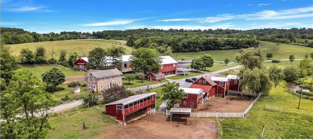A charming 4-bedroom, 2-bathroom stone farmhouse serves as the residence. It offers a large eat-in custom kitchen, grand dining room, cozy living room & a nice office. There is a 2-acre lot with views included that is un-preserved and could be built upon or sold off separately by the new owner.