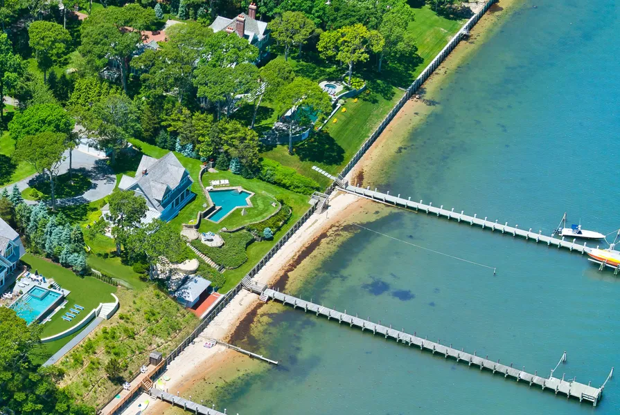 Enjoy sweeping northeastern views of Sag Harbor Bay and beyond from this spectacular waterfront setting on a quiet rambling road in exclusive North Haven. This exceptional 1.7+/- acre property with 200' +/- bulkhead beach front with deep water dock and mooring also offers a waterside 50'x20' heated Gunite pool, rolling lawn, and beautiful outdoor terraces from which to savor the view. The traditional, wood-sided, 4,200 sq. ft. residence has been newly furnished with a junior master suite with private deck, two guest bedrooms, one with access to an outdoor patio, and bathroom. Upstairs a guest suite and spacious master suite with office, both with high ceilings and water views, occupy the second floor. All bedrooms have flat screen TVs. The common spaces open with front foyer that lines directly to the living room with fireplace and adjoining sun room, bother with end-to-end bay-facing windows. The chef's kitchen includes all professional appliances, and passes through to the sun-filled dining room. Numerous stone porches and covered patios provide easy indoor-outdoor living and entertaining. Detailed stone walkways lead to the waterside pool, sandy beach, waterside cabana, adjoining outdoor shower, and boat dock. The rolling front lawn and semi-circular driveway create a lovely approach to the house, with detached 2-car garage, built-in outdoor barbeque, and sport court. This very special and private setting is just moments from charming Sag Harbor village. Also available: two weeks for $100k Aug 1st - Sept 6th 2021; June $190K