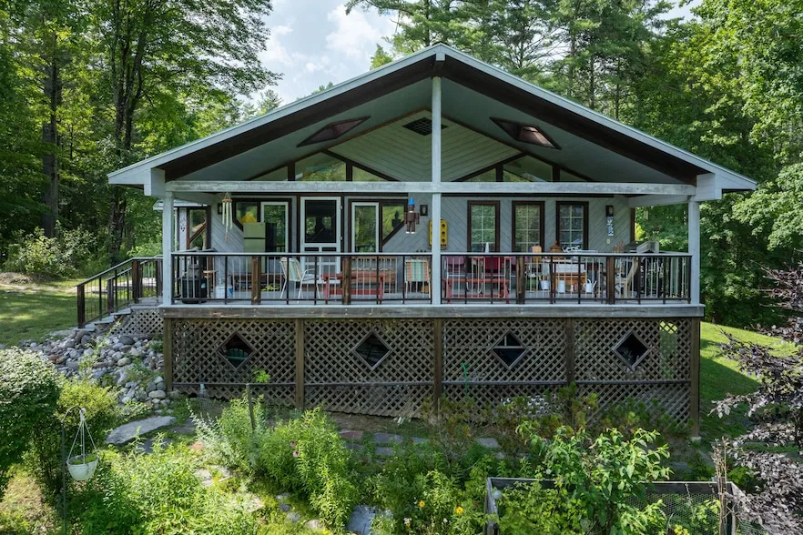 Lake Access, 3+ acres, Inground Pool, and room for expansion! Tucked away on a private road with shared lake access to the serene waters of Lake Washinee, this custom one-level home with room for expansion, offers the perfect blend of natural beauty, thoughtful design, and modern comfort. Set on just over three wooded acres with a tranquil stream, the property offers privacy and peaceful surroundings in every direction. The original home was built in 1950. There was a complete renovation and additions to the home in 2003, enlarging the home significantly. Step inside to discover vaulted ceilings, hardwood floors, and skylights that flood the home with natural light. The spacious primary suite is a true retreat, featuring a large bedroom with a distinctive triangular balcony, large bathroom with a hot tub and walk-in shower, a walk-in closet, and a convenient laundry room-all on the main level. Designed with indoor-outdoor living in mind, the home boasts a large covered deck perfect for entertaining or relaxing in any season. Just steps away, an inground pool with its own covered lounge area invites summer enjoyment. The lower level includes a private bedroom with half bath and its own entrance-ideal for guests, a home office, or rental potential. A walk-out basement and one-car garage offer additional storage and the opportunity to expand your living space.