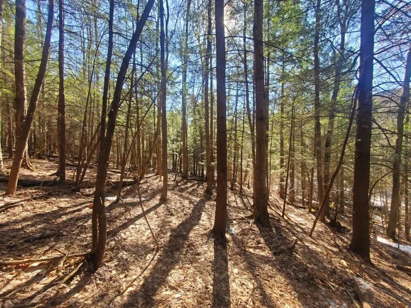 Situated just north of Corning, in the hills of Hornby, is this private piece of timberland. The land lays flat along the road with Borden Creek flowing south through the property. A very private setting provided by 1,400 ft. of frontage on the seasonal road including nearly an acre on the west side of the road. The remaining land slopes up on the east side of the road consisting of a mix of timberland including maple, hemlock, beech, and oak. Old logging trails meander throughout, and with some clearing, they would be great for hiking or riding.