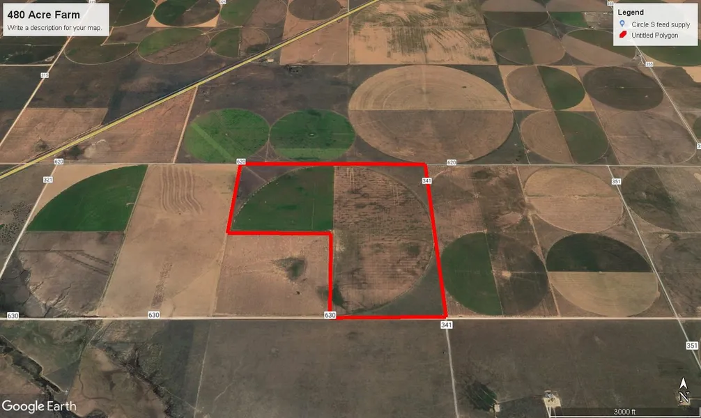 This farm is located in southwestern Terry County, north of WEllman, Texas. The farm has a total of 600 gallons per minute of water produced by 5 irrigation wells. 360 acres of the farm are irrigated by a 2011 Valley 1/2 mile pivot system. There is a total of 1.6 gallons per minute, per irrigated acre.