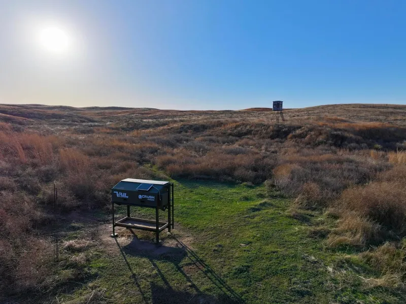 An 80 acre irrigated pivot which is usually in Alfalfa, is the focal point of the deer activity and brings them in from miles and miles away. Additional dry land plots have also been established adding great variety to what the deer have available to eat. 4,000 lb. Crush feeders, 1,000 lb. ASF feeders, a 24,000 lb. bulk feeder and a 60,000 lb. corn storage bin help to provide the year round food sources that keep all of the wildlife on the ranch. 1.5 miles of Crooked Creek provides a fantastic year round water source and with 7 solar powered water troughs throughout the ranch, the deer will never go thirsty.